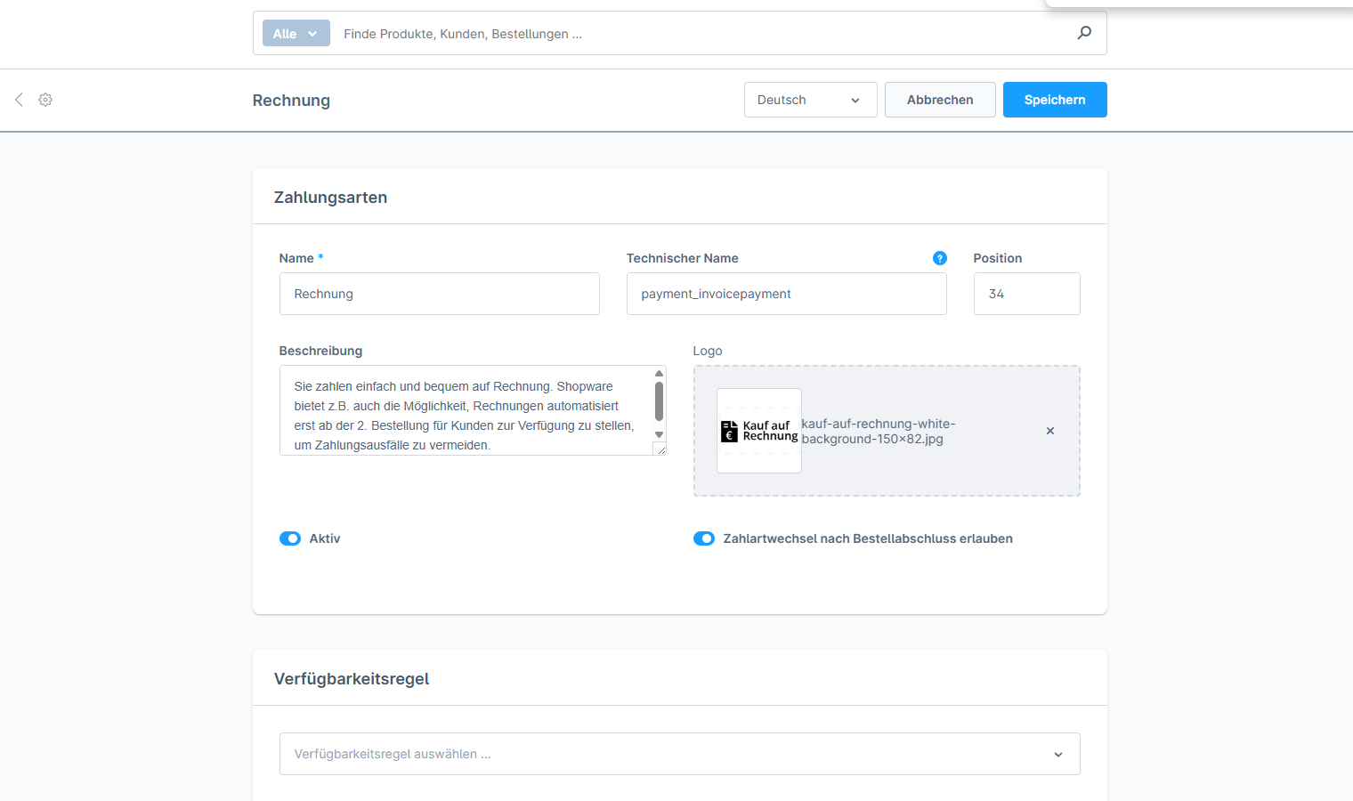 Vorkonfigurierte Zahlungsarten