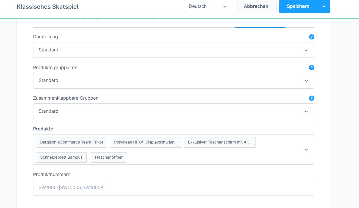 Du kannst die Produkte individuell im Bereich -> Spezifikationen -> Produkt-Zubehör hinterlegen. Dort kannst du die Darstellungen der Zubehörartikel sowie die Gruppierungen und die einzelnen Produkte hinterlegen.
