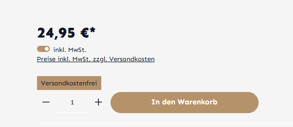 Kunden sehen schon auf der Produktseite, ob sie beim Kauf dieses Artikels versandkostenfrei bestellen können. Dadurch neigen Kunden eher zum Kauf, wenn sie wissen: Kein zusätzlicher Versandaufwand.
